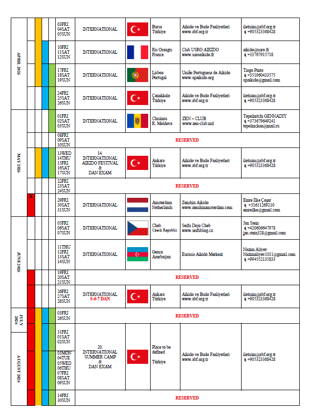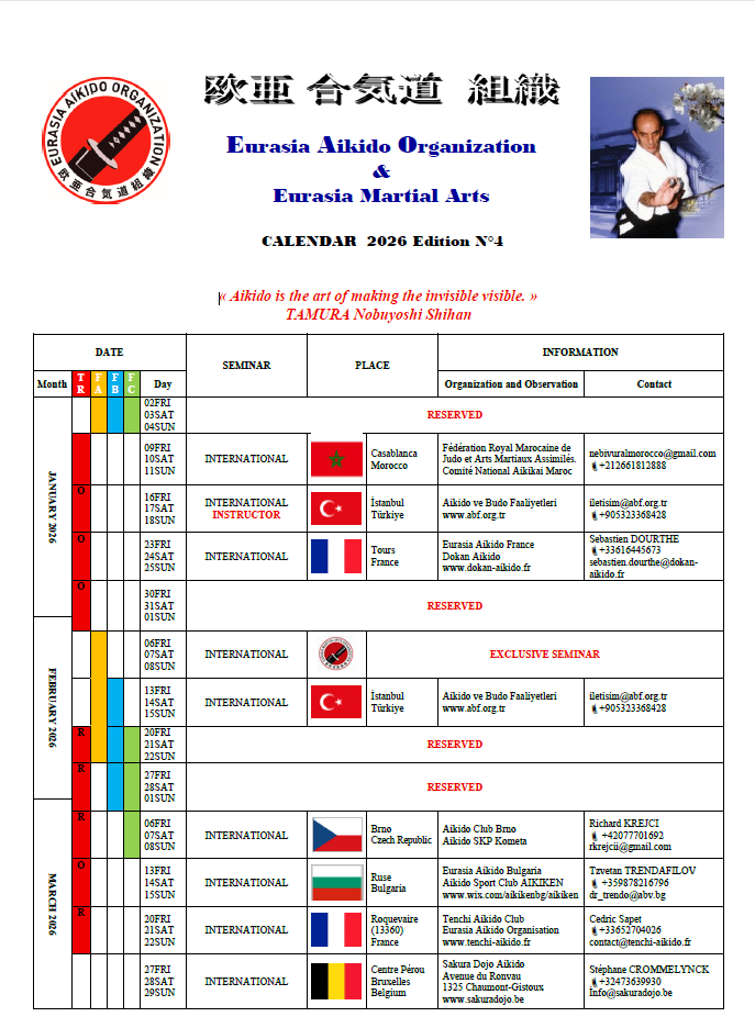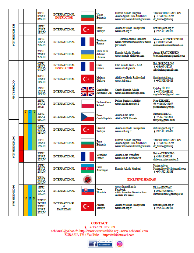 Расписание Международных семинаров Основателя и Технического директора Eurasia Aikido Organization Неби Вурал Сенсей 8 Дан